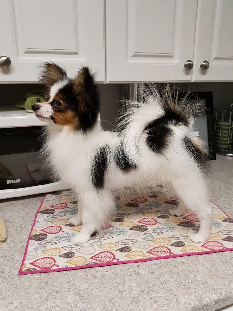 Taylor finished his Canadian Championship as a young puppy. He finished he American Championship in a matter of a few shows with many Best of Breed wins from the classes. He continued his winning in Canada with many group wins including winning the Lambton-Kent Toy club. In 2023, he finished #3 Papillon in Canada. He has sired many Canadian Champions and even grand-sired some. Taylor has won multi Best Veteran in Shows and now is retired from showing.